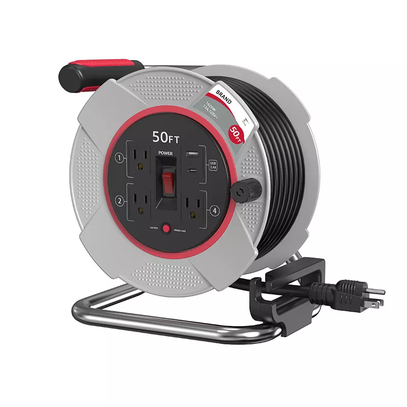 صفحه اصلی > محصولات > حلقه بند ناف > Plastic Cord Reel > 3 خروجی USB2.4a حلقه سیم پلاستیکی 50 فوت با محافظ اضافه بار